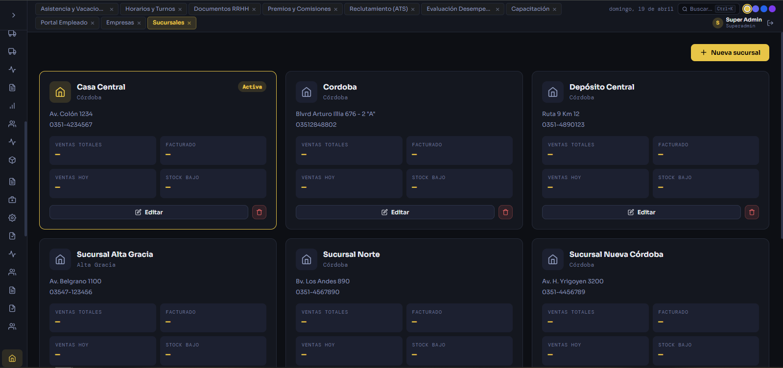 Gestión centralizada de múltiples locales con sincronización de datos, reportes por sucursal y transferencias de mercadería.