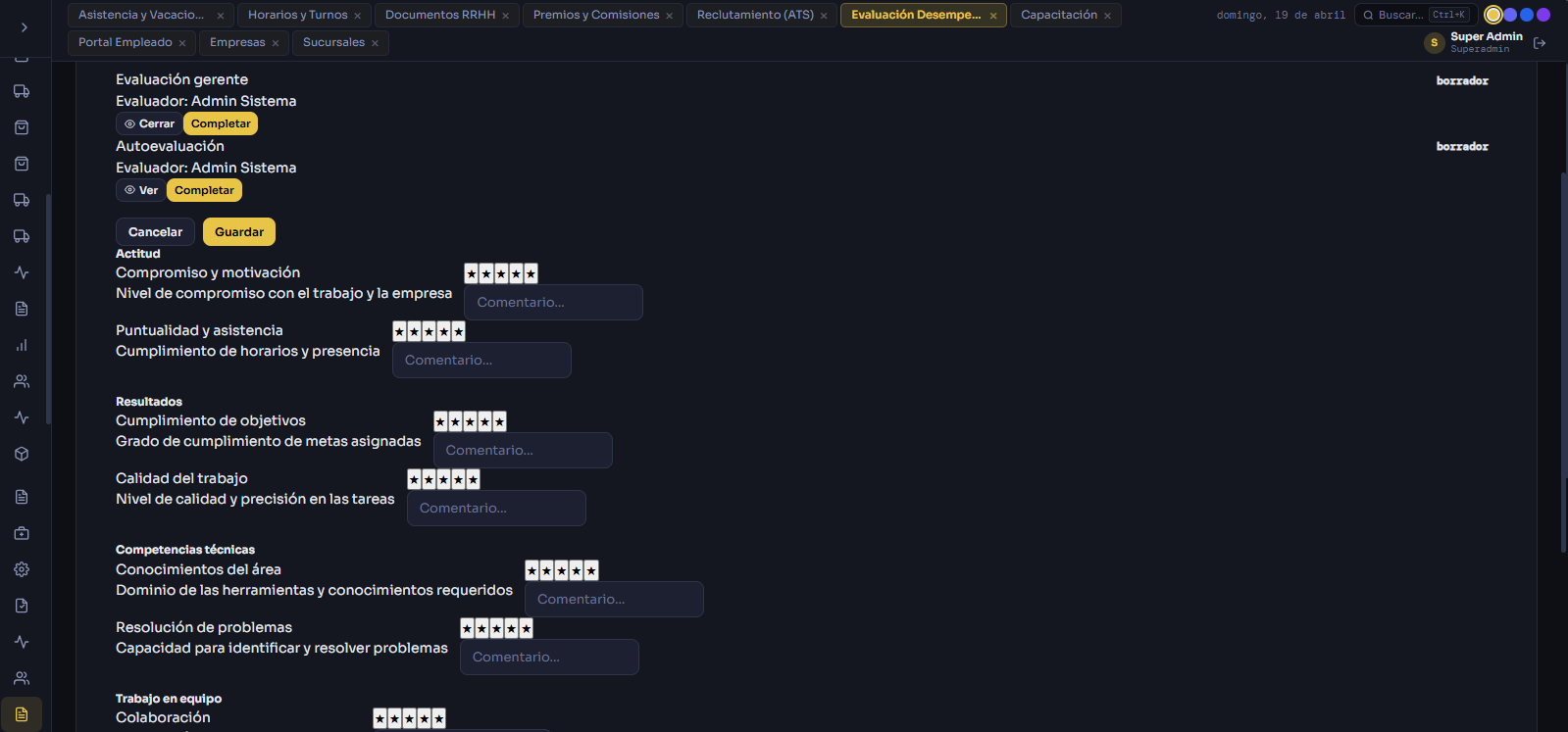 Gestión de empleados, horarios, evaluación de desempeño, liquidación de sueldos y portal de empleos.