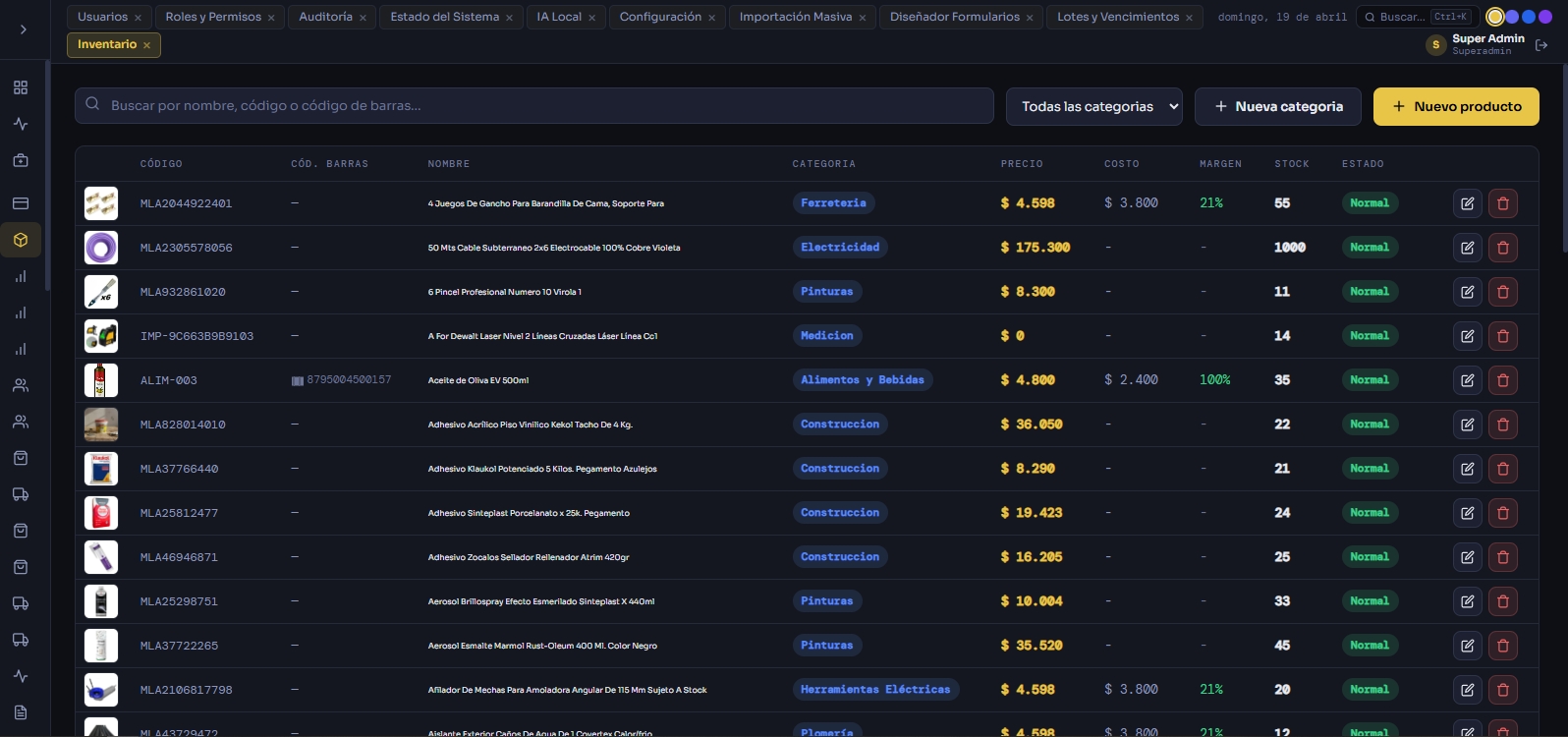 StockFlow es adaptable a más de 20 rubros: supermercados, ferreterías, indumentaria, distribuidoras, restaurantes, farmacias, autopartes y más.